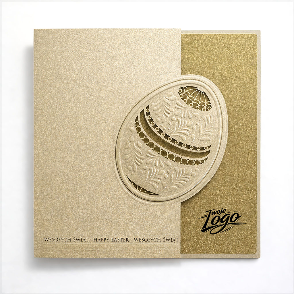 Ekskluzywna kartka wielkanocna o wyraźnie biznesowym i reprezentacyjnym charakterze, stworzona z myślą o firmach i instytucjach, które stawiają na profesjonalną, spójną i prestiżową komunikację świąteczną. Duży, kwadratowy format oraz szlachetna kolorystyka sprawiają, że kartka od pierwszego spojrzenia buduje wizerunek marki solidnej, eleganckiej i godnej zaufania.
