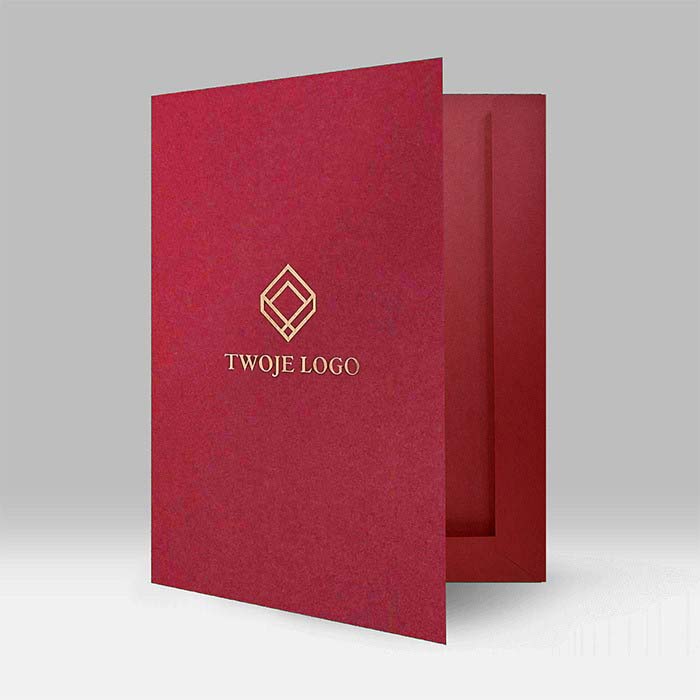 - Logo złocone lub srebrzone: koszt matrycy jednorazowo 100 zł, plus dodatkowo 1,5 zł za wyzłocenie jednej teczki